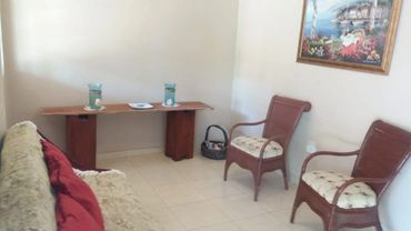 Un dormitorio para dos personas. Incluye sala, armario, y aire acondicionado. Baño privado con agua caliente y cosina pequeña.